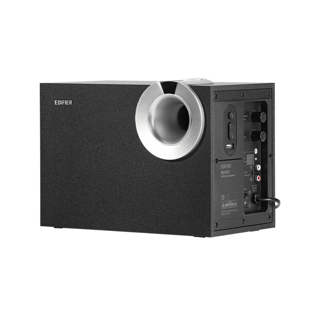 Корпус M206BT изготовлен из 9мм MDF панели, это позволяет эффективно уменьшать нежелательный резонанс и получать более чистый, насыщенный звук. Сабвуфер оснащён большим 131-миллиметровым низкочастотным динамиком и передней фазоинверсионной трубкой, что обеспечивает мощные басы и панорамную атмосферу звукового поля. Цифровая обработка звука DSP обеспечивает точное цифровое разделение частот и динамическое управление, которое обеспечивает баланс между средними и высокими частотами. Встроенный 3,5-мм аудиоразъем обеспечивает совместимость с ПК, ноутбуком, телевизором, мобильным телефоном, MP3-плеером и другими устройствами.