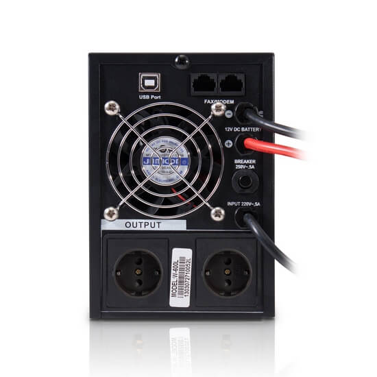 Устройство, позволяющее подключенному оборудованию работать от подключенной батареи. Кроме того, оно способно корректировать параметры (напряжение, частоту) электропитания. Часто применяется для обеспечения бесперебойной работы компьютеров, насосов, двигателей и тех устройств которым необходима синусоидальная форма выходного сигнала.