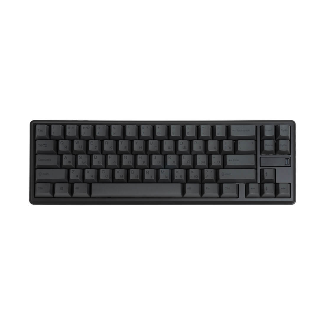 Клавиатура выполнена в компактном форм-факторе 68%, что обеспечивает удобство при использовании и экономию рабочего пространства. Корпус из алюминия не только добавляет прочности, но и придает устройству премиальный вид. Черный цвет и минималистичный дизайн делают ее стильным элементом любого рабочего места.