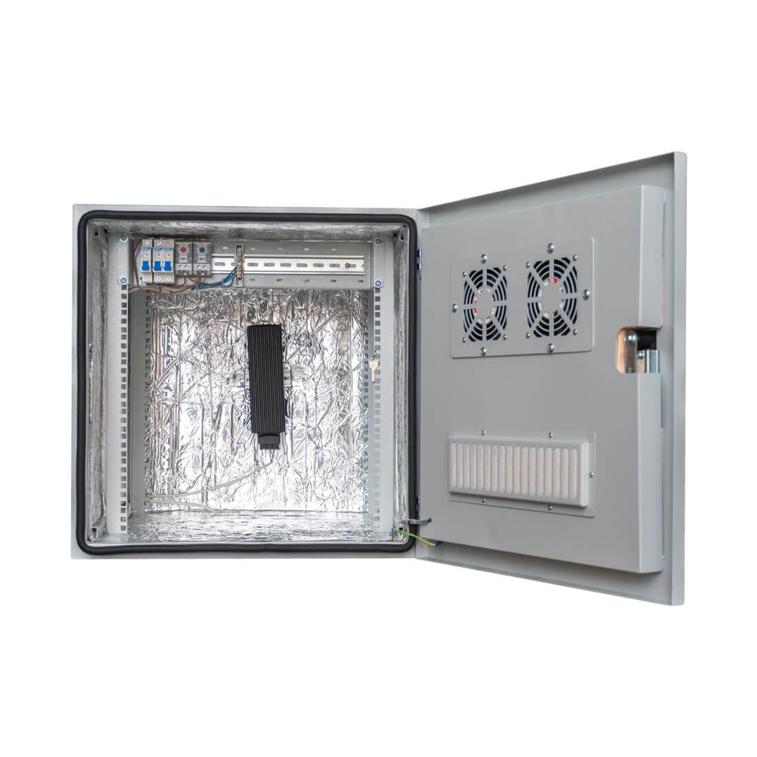 Комплектация - Вентилятор 120мм 220В 2 шт., Обогреватель 100Вт 1 шт., Автомат 16А 3 шт., Термостат NC 1 шт., Термостат NO 1 шт.