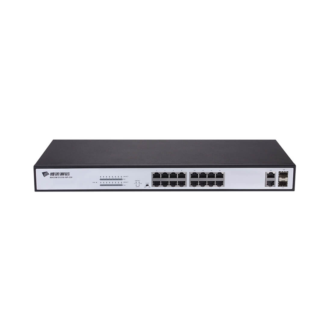 Коммутатор Неуправляемый BDCOM, S1218-16P 16 портов PoE 10/100M RJ45, 2 комбо порта 1000M RJ45/SFP, Бюджет PoE 250W, supports standard/VLAN/CCTVmode, Стоечный 1U