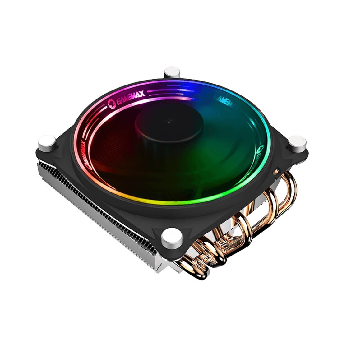 Воздушный кулер процессора Gamma 300 обеспечивает превосходную производительность благодаря 120-миллиметровому вентилятору с большой чашей для более высокого давления воздуха и уникальной конструкции ускоренного охлаждения сверху вниз для рассеивания тепла процессора, памяти и материнской платы. Gamma300 предназначен для энтузиастов и геймеров, чтобы довести свои системы до предела. Исключительная эффективность охлаждения является обязательным условием для стабильной работы и максимальной скорости. Кроме того, Gamma 300 имеет стильный дизайн, соответствующий высокоточным компонентам вашей сборки. Он даже поставляется с радужными вентиляторами ARGB и контроллером, чтобы вы могли изменять освещение без ограничений, и он применяется с 3-контактным разъемом AURA для синхронизации. Gamm300 Rainbow имеет 5 тепловых трубок прямого контакта, обеспечивающих наилучшие тепловые характеристики. Основание, спроектированное таким образом, чтобы свести к минимуму зазоры между контактами процессора, обеспечивает отличную теплопроводность.