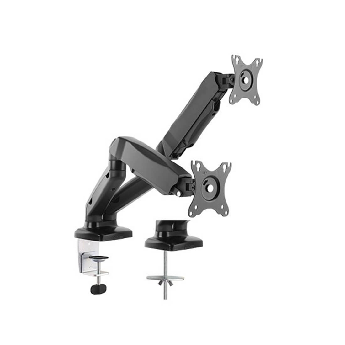 Настольный кронштейн с газлифтом, Brateck, LDT13-C024, для мониторов 13"-27", Нагрузка 2х6.5 кг., Наклон + 90°~- 45°, Поворот +/- 90°, Вращение монитора +/- 180°, VESA 75x75,100x100.