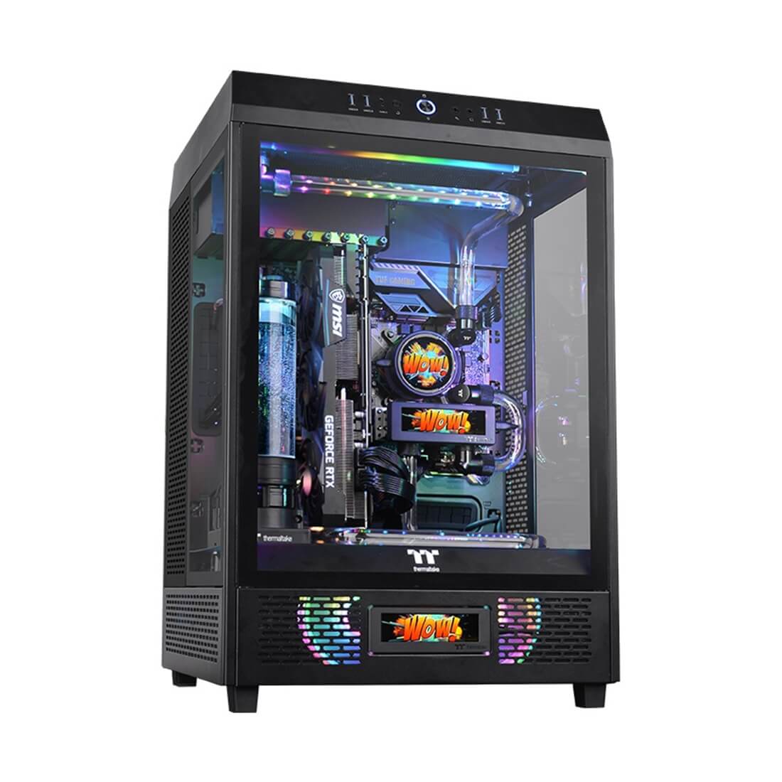 Благодаря TT RGB Plus 2.0, 3,9'' ЖК-дисплей отображает информацию в реальном времени и воспроизводит файлы JPG и GIF с разрешением 128*480. Более того, пользователи могут даже показывать на дисплее время и информацию о погоде, что добавляет великолепную визуальную эстетику и расширяет функционал корпуса Tower 500.