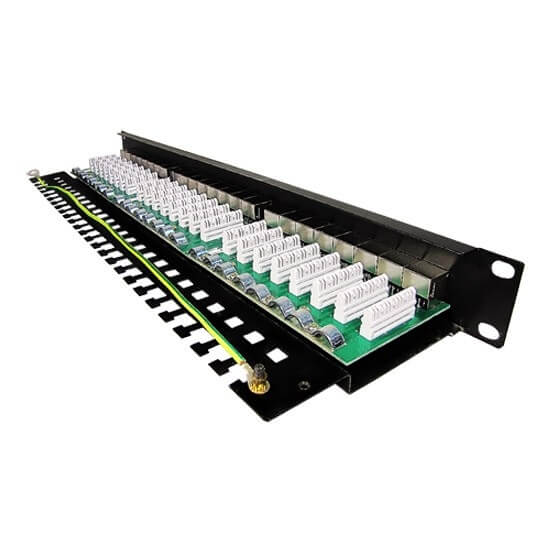 Коммутационная 24 портовая панель, необходимая для консолидации информационных кабелей этажной (горизонтальной) подсистемы СКС. Служит для удобства коммутации и администрирования СКС. Коммутационная панель (patch panel) состоит из 24 портов RG 45 с фронтальной стороны и разъёмов DUAL IDC с тыльной стороны.