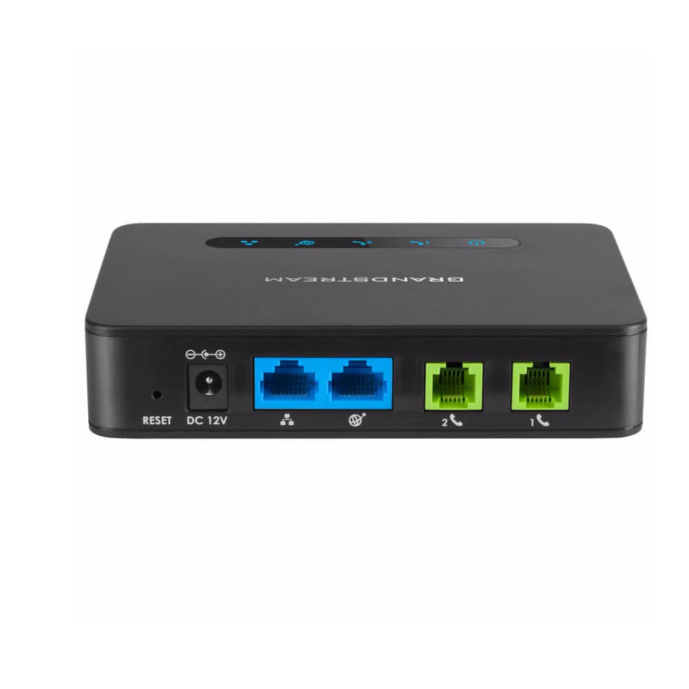 Телефонный адаптер HT812 оснащен двумя портами FXS и двумя портами Gigabit Ethernet с поддержкой функции NAT. Поддержка гигибитной сети становится с каждым годом все более актуальной, так как все больше компаний переходят на высокопроизводительные локальные вычислительные сети. Также HT812 поддерживает множество технологий автоматической настройки, такие как Zero-config (при работе с IP-АТС Grandstream серии UCM), XML и TR-069. Отдельного упоминания заслуживают и протоколы безопасности SRTP и TLS, благодаря которым можно гарантировать конфиденциальность телефонных разговоров. Grandstream HT812 выполнен в современном черном корпусе и оборудован всеми необходимыми светодиодными индикаторами.