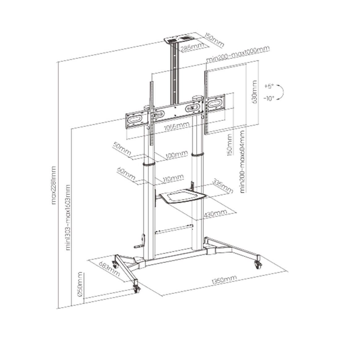 Данная мобильная стойка премиум-класса на колесах позволяет перемещать телевизор или монитор в любую комнату вашего дома или офиса. Это устройство универсально подходит для большинства LED, LCD, плазменных телевизоров и других плоских дисплеев.