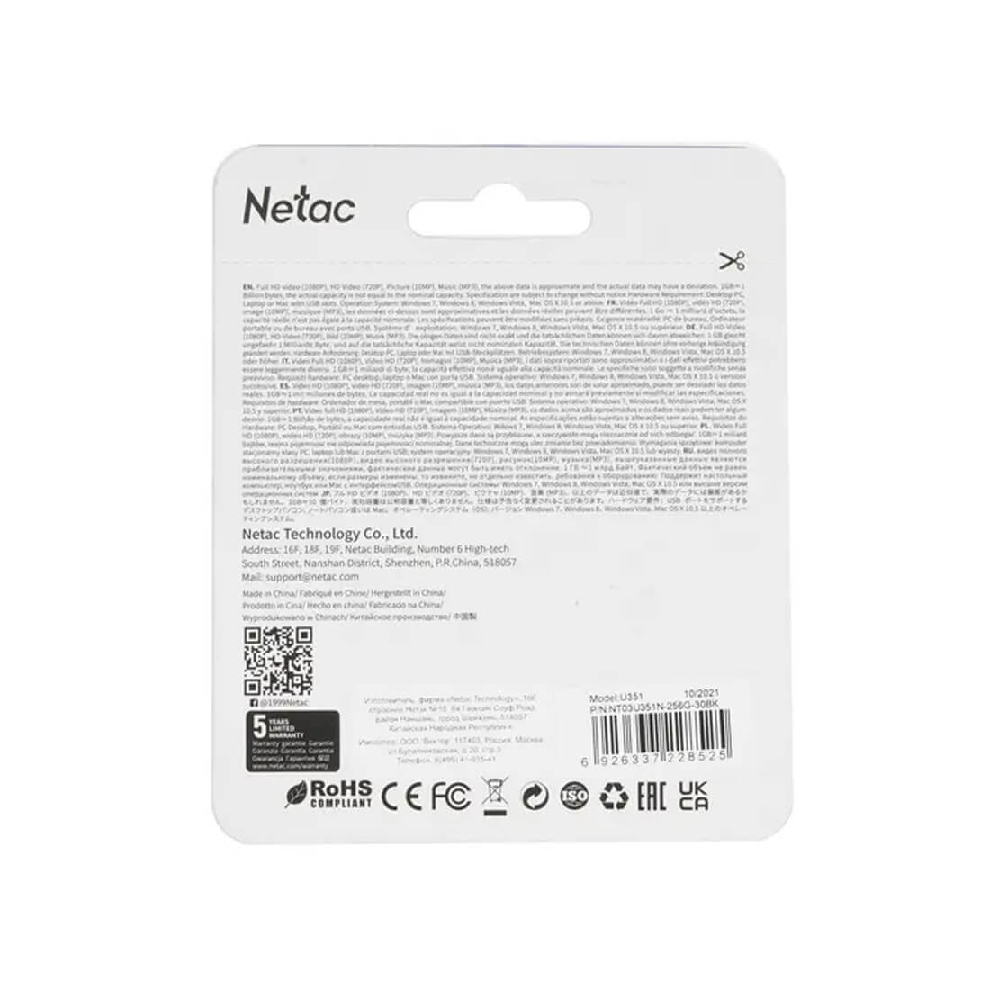 Память USB Flash 256 ГБ Netac U351 [NT03U351N-256G-30BK] представляет собой сочетание большой емкости и высокой производительности, которое станет отличным выбором для комфортной работы с фото и видео высокого разрешения, а также с любыми другими файлами большого размера. Благодаря компактным размерам вы сможете брать накопитель с собой куда угодно, а качественный металла и надежная монолитная конструкция с колпачком обеспечат надежную защиту от механических повреждений.