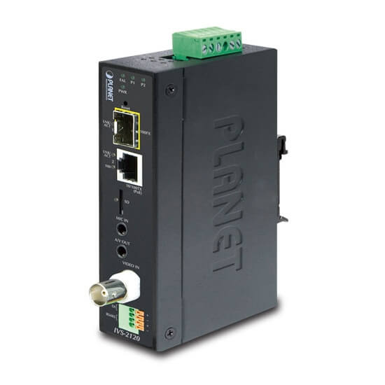 Planet IVS-2120 - промышленный интернет видео сервер. Имеет встроенный SFP трансивер для увеличения дальности передачи данных. IVS-2120 - одноканальный PoE интернет видео сервер, поддерживающий высокоформатное (H.264) сжатие видео, что значительно снижает пропускную способность без ущерба для качества изображения. Онлайн мониторинг за 20 клиентами одновременно.