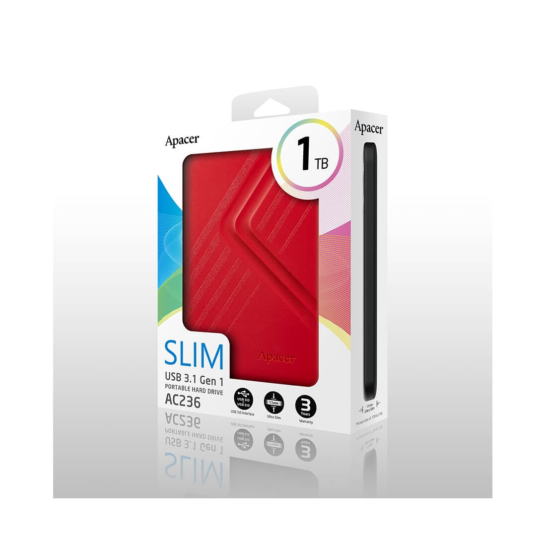 Внешний жёсткий диск, Apacer, AC236, AP1TBAC236R-1, 1TB, 2.5", USB 3.1, Красный